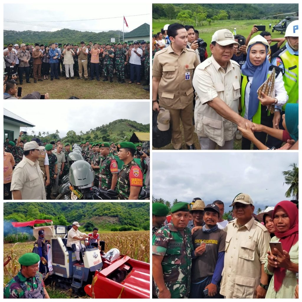 Usai peninjauan dan penyerahan Menhan RI juga melaksanakan panen jagung bersama masyarakat di lokasi ketahanan pangan dusun serangan desa Selong belanak Praya barat, yang jaraknya tidak jauh dari lokasi posramil.