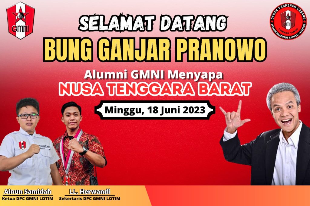 SAKSI HUKUM INDONESIA.COM, LOMBOK TIMUR NTB, Dewan Pimpinan Cabang Gerakan Mahasiswa Nasional Kab. Lombok Timur (DPC GMNI Lotim) menyambut dengan hangat kedatangan salah satu alumni GMNI yang akan berkontestasi dalam perhelatan pesta demokrasi Indonesia sebagai bakal calon presiden 2024-2029 H. Ganjar Pranowo. Kedatangan GP di Nusa Tenggara Barat pada Minggu, (18/6/ 2023).