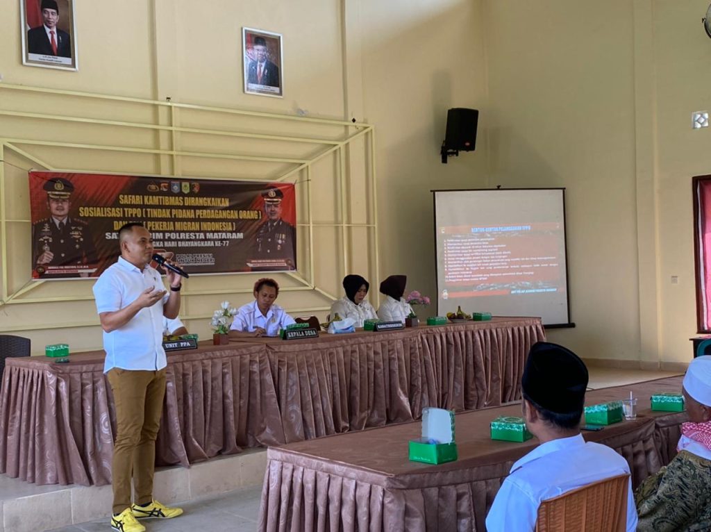 Kapolresta Mataram melalui Kasat Reskrim Kompol I Made Yogi Purusa Utama SE SIK MH saat dikonfirmasi mengatakan bahwa pada hari Rabu, tanggal 21Juni 2023, pukul 10.00 Wita bertempat di Gedung Serba Guna Desa Sigerongan, Kec. Lingsar, Kab. Lombok Barat kami bersama rombongan Kanit PPA, Para Kasubnit PPA, beserta Anggota Unit PPA melakukan Kegiatan Safari Kamtibmas dirangkaikan Sosialisasi TPPO (Tindak Pidana Perdagangan Orang) dan PMI (Pekerja Migran Indonesia) Sat Reskrim Polresta Mataram dalam rangka Hari Bhayangkara Ke-77.