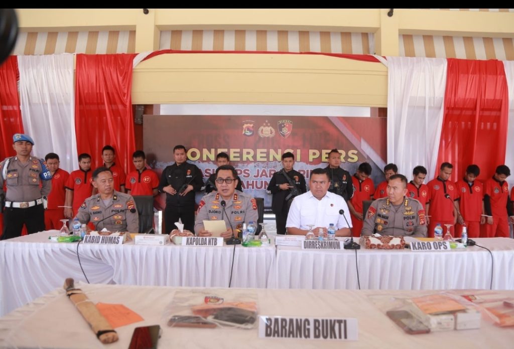 SAKSI HUKUM INDONESIA.COM ll ATARAM NTB – Kepala Kepolisian Daerah (Kapolda) Nusa Tenggara Barat (NTB) memimpin Konferensi pers dalam rangka pelaksanaan Operasi Jaran Rinjani 2022 yang telah berlangsung selama 14 hari terhitung dari tanggal 31 Juli – 13 Agustus 2023.