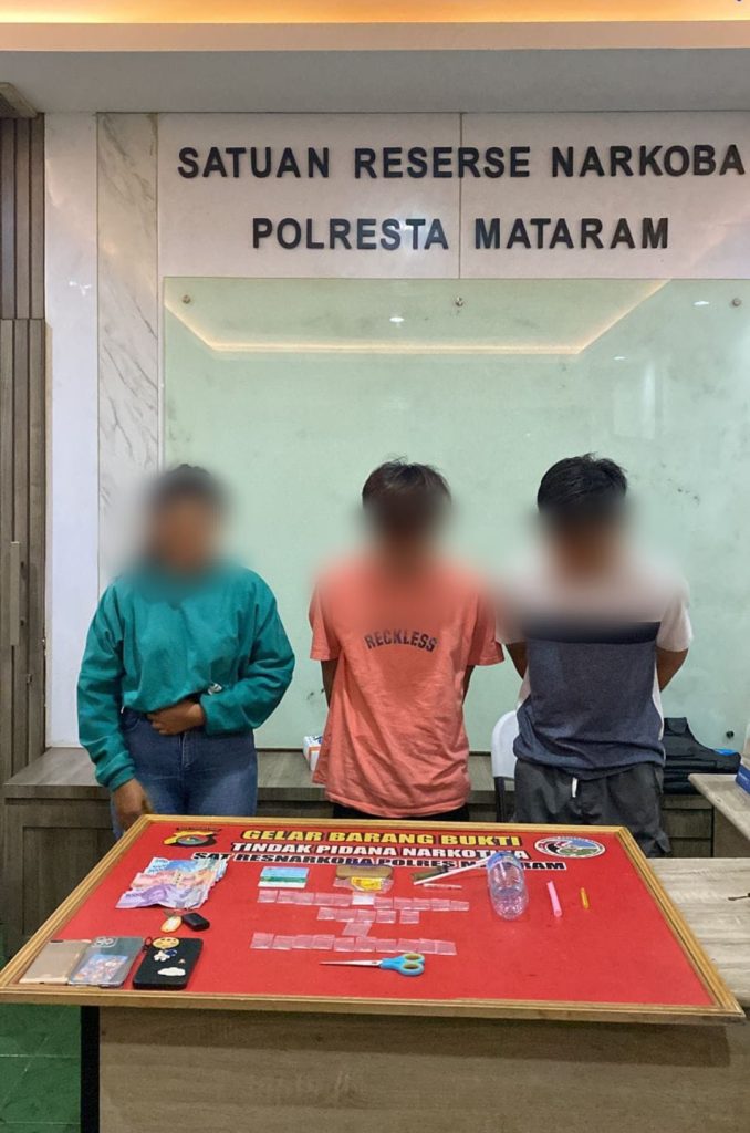 Diketahui sementara, identitas ketiga terduga yang diamankan yakni RM (26) dan SA (22) keduanya Kaki – Laki alamat Cakranegara Kota Mataram dan seorang Perempuan HA, Ibu Rumah Tangga, alamat Identitas, Dopang, Kecamatan Gunungsari, Lombok Barat.