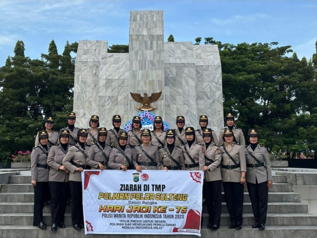 Palu – Kepolisian Wanita (Polwan) Polda Sulteng menggelar upacara ziarah bersama di Taman Makam Pahlawan (TMP) Tatura, Kota Palu, Rabu (23/8/2023).
