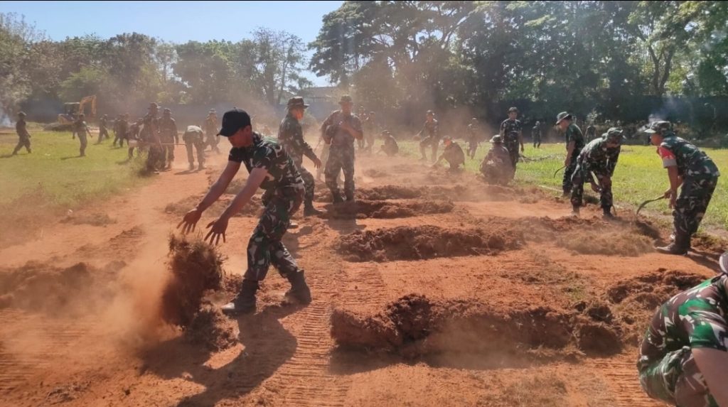 SAKSI HUKUM INDONESIA.COM ll LOMBOK TIMUR – Komandan Kodim 1615/Lotim Letnan Kolonel Inf Bayu Sigit Dwi Untoro memimpin langsung karya bakti pembersihan lapangan Porda Selong Lombok Timur, Jumat (22/09/2023).