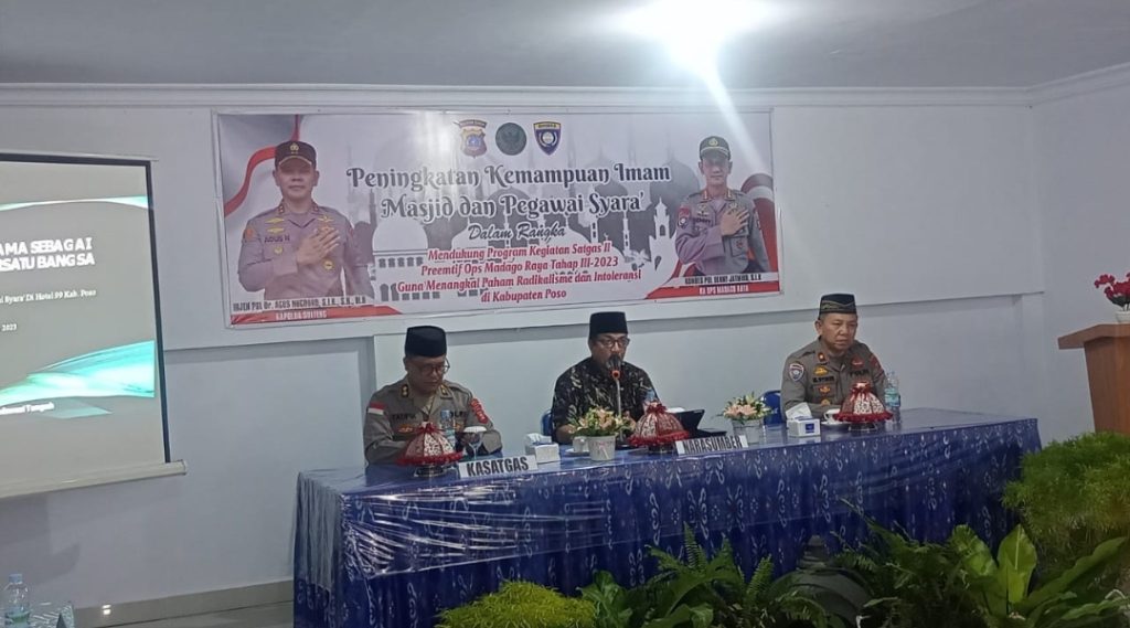Peningkatan kemampuan kepada Imam masjid dan pegawai syara se Kab. Poso turut dihadiri Kasatgas Preemtif Operasi Madago Raya AKBP Taufik Lamakarate, S.H, Kementrian Agama Kab. Poso H. Ahmad Suhardi, S.Pd.I, M.M dan jajaran satgas preemtif.