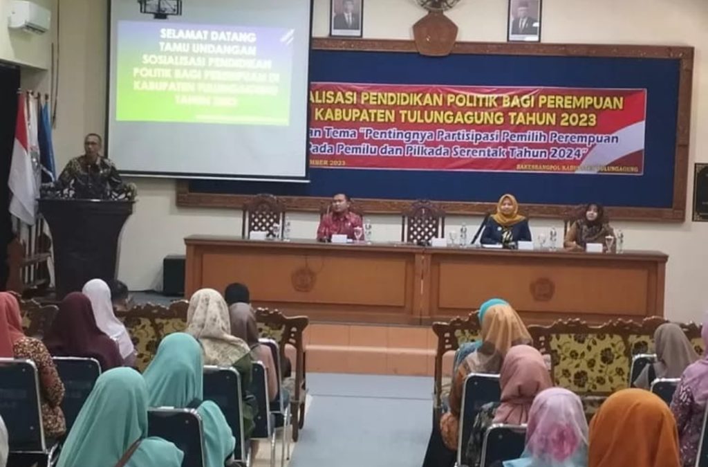 Tulungagung,-Saksihukumindonesia.com-Menjelang Pemilu tahun 2024, Badan Kesatuan Bangsa dan Politik (Bakesbangpol) Kabupaten Tulungagung, menggelar kegiatan Sosialisasi Pendidikan Politik bagi Perempuan.
