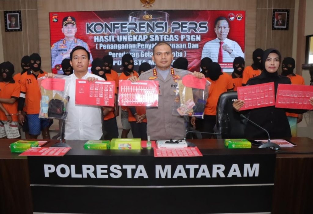 Dari pelaksanaan tugas Satgas dan OPS Antik Rinjani Sat Resnarkoba Polresta Mataram telah mengamankan 17 tersangka dari 15 kasus yang berhasil diungkap, dengan jumlah Barang bukti sabu seberat 68,34 gram, BB berupa uang tunai sebesar 15 juta rupiah.