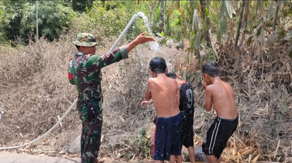 SAKSI HUKUM INDONESIA.COM ll LOMBOK TIMUR – Peringatan HUT TNI tidak hanya dimeriahkan dengan lomba-lomba, namun juga dengan berbagai kegiatan yang bermanfaat bagi masyarakat banyak. Berkenaan dengan itu, Komandan Kodim 1615/Lotim Letnan Kolonel Inf Bayu Sigit Dwi Untoro melihat langsung hasil karya Babinsa Toya Koramil 1615-11/Aikmel Sertu Ayu Jayadi dalam upaya pemenuhan kebutuhan air bersih bagi masyarakat. Dandim 1615/Lotim bersama rombongan tiba di lokasi kali wisata Loang Gali Dusun Montor Sugia Lauq Desa Toya Kecamatan Aikmel, Selasa (17/10).