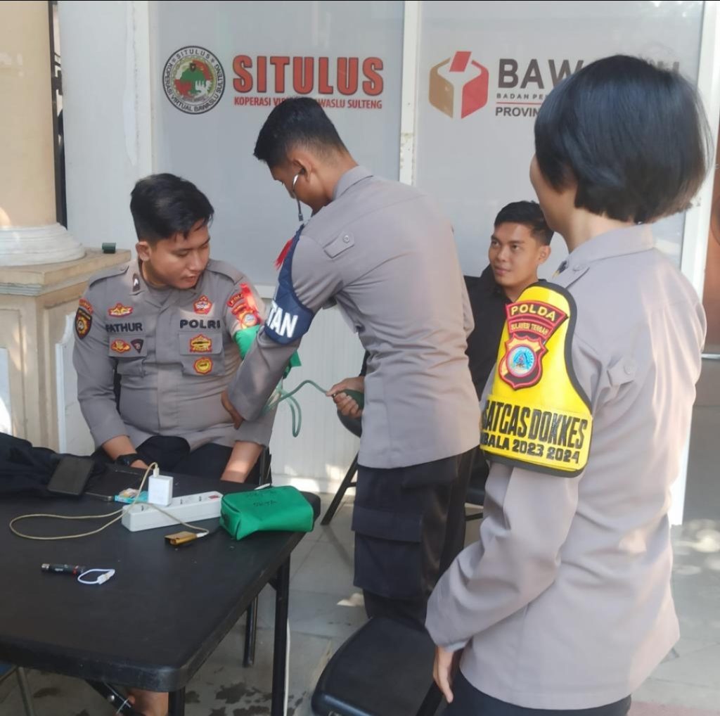 “Kegiatan pengecekan kesehatan akan secara berkala dilakukan terhadap personel yang terlibat Operasi Pengamanan Pemilu 2024” kata Kasatgas Humas Kombes Pol. Djoko Wienartono dalam keterangan resminya di Palu, Jumat (27/10/2023)