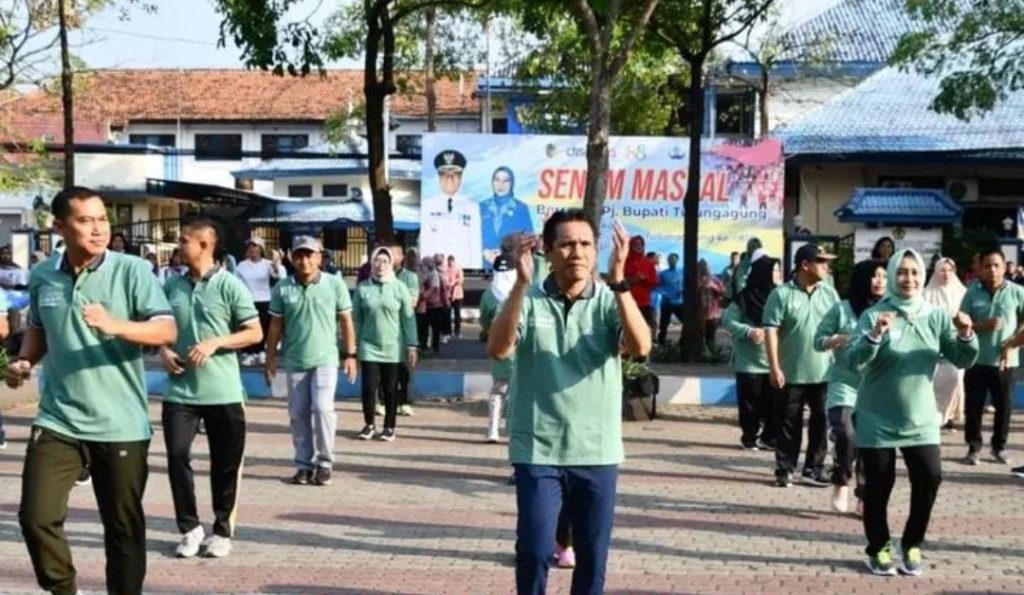 Tulungagung,-Jelang Peringatan Hari Jadi Kabupaten Tulungagung ke 818 dan Hari Ulang Tahun Korpri ke 52 Pemerintah Kabupaten Tulungagung melalui Dinas Pemuda dan Olahraga mengadakan Senam Masal di halaman Kantor Bupati Tulungagung, pada Jum’at (27/10) pagi.