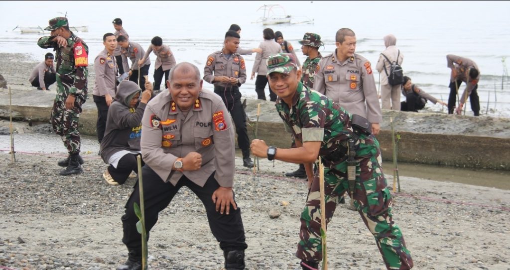 Menggandeng unsur TNI sebagai wujud sinergitas, penanaman pohon mangrove dipimpin oleh Kepala Biro (Karo) Sumber Daya Manusia (SDM) Polda Sulawesi Tengah (Sulteng), Kombes Pol Yudi Kurniawan, SIK, M.Si,