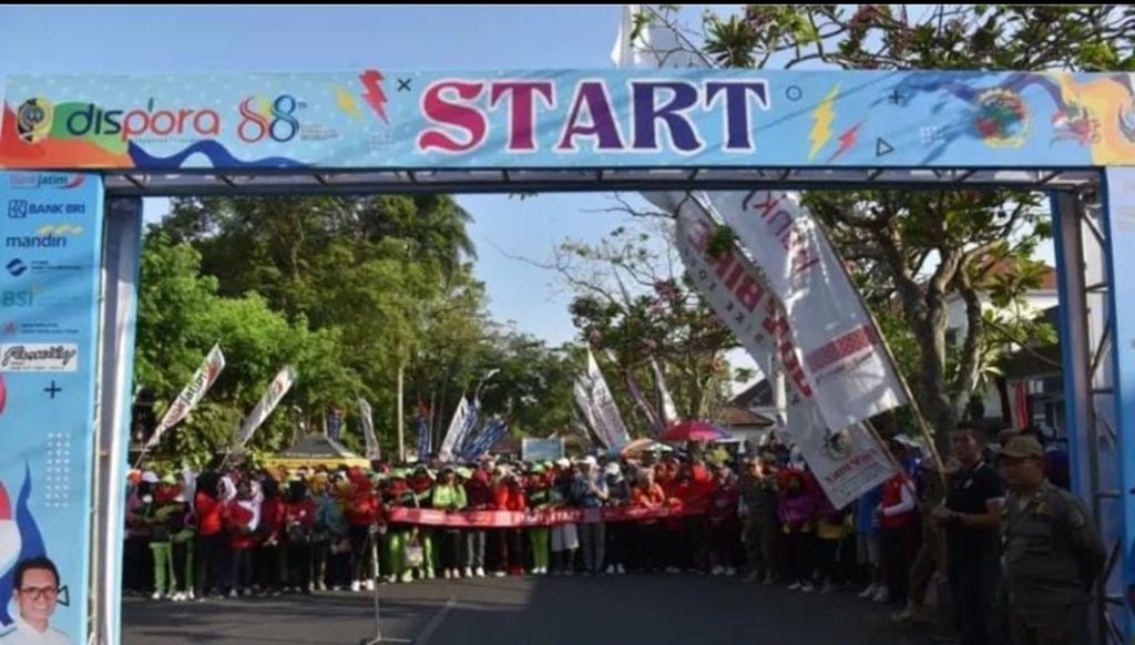 Tulungagung,- Dalam rangka memeriahkan Peringatan Hari Jadi Ke-818 Tahun 2023, Hari Koperasi Ke-76 dan HUT Ke-52 Korps Pegawai Republik Indonesia (KORPRI), Dinas Pemuda dan Olahraga (Dispora) Kabupaten Tulungagung, menyelenggarakan acara Jalan Sehat Bersama Pj Bupati Tulungagung dengan peserta terdiri dari unsur perangkat daerah lingkup Kabupaten Tulungagung, Siswa-Siswi SD, SMP/MTS, DAN SMA/SMK/MA, Anggota Koperasi serta masyarakat umum. Selain itu Jalan Sehat ini mempunyai tujuan untuk mendorong minat masyarakat agar gemar berolahraga, memasyarakatkan olahraga dan mengolahragakan masyarakat, terang Kepala Dispora, Achmad Mugiyono, SSTP., MM., dalam laporannya selaku panitia.
