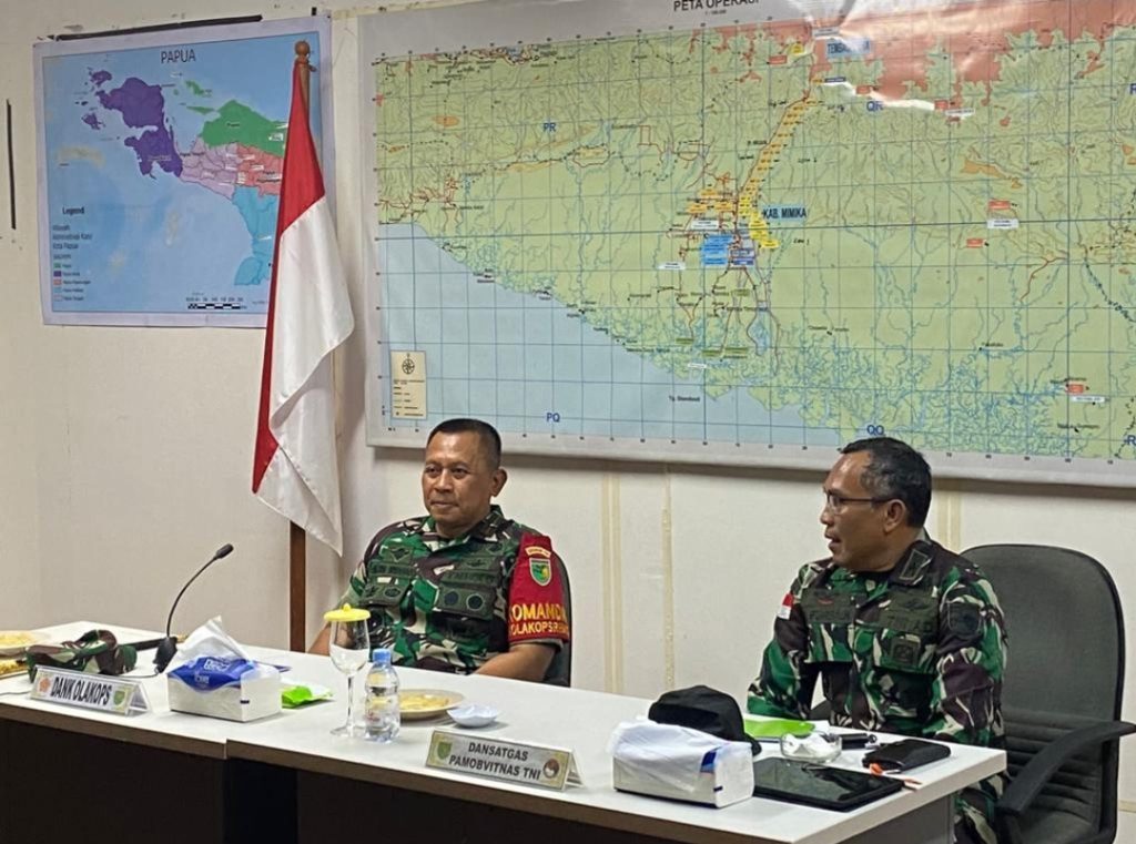 terima kunjungan Dankolakops Rem 174/ATW Brigjen TNI Agus Widodo, S.I.P., M.Si., sebagai bentuk dukungan moril kepada prajurit yang bertugas di Distrik Tembagapura, Kabupaten Mimika, Papua Tengah pada Kamis kemarin.