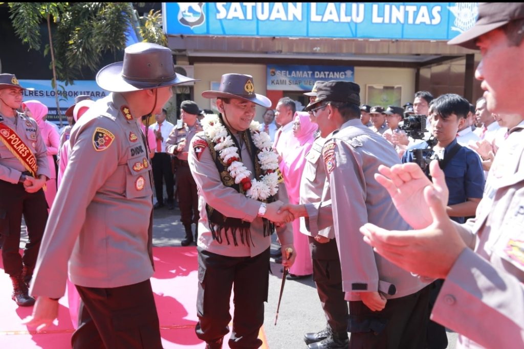 Rombongan Kapolda NTB disambut dengan jajar kehormatan oleh anggota Sat Samapta di penjagaan Mako Polres Lombok Utara, serta disambut dengan tarian selamat datang dan pengalongaan bunga sebagai tanda selamat datang di Mako Polres.