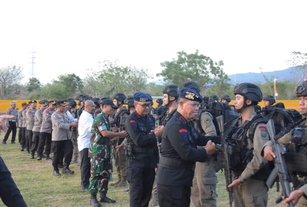PALU, Kapolda Sulawesi Tengah (Sulteng) Irjen. Pol. Dr. Agus Nugroho, S.I.K., S.H., M.H. memimpin langsung Apel pemberangkatan 110 Personel Satbrimob Polda Sulteng yang akan melaksanakan Latihan Pra Operasi Operasi (Latpraops) Damai Cartenz 2024 BKO Polda Papua.