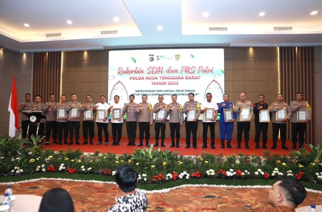 Usai membuka rakorbin SDM Kapolda NTB juga memberikan penghargaan kepada beberapa PJU Polda NTB yang berperestasi berikut daftar PJU yang menerima Penghargaan :
