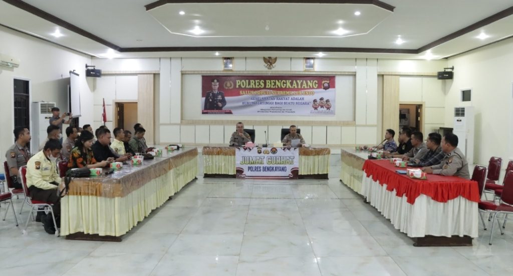 Bengkayang, Kalbar – Kepolisian Resor Bengkayang Polda Kalbar menggelar kegiatan bertajuk Jum’at Curhat dengan mengambil tema “HUT Satpam Ke-43 Tahun 2023 dan Peningkatan Kompetensi Satpam Mendukung Pemilu 2024″, bertempat di Aula Tunggal Panaluan, Jum’at (24/11/23) pagi.