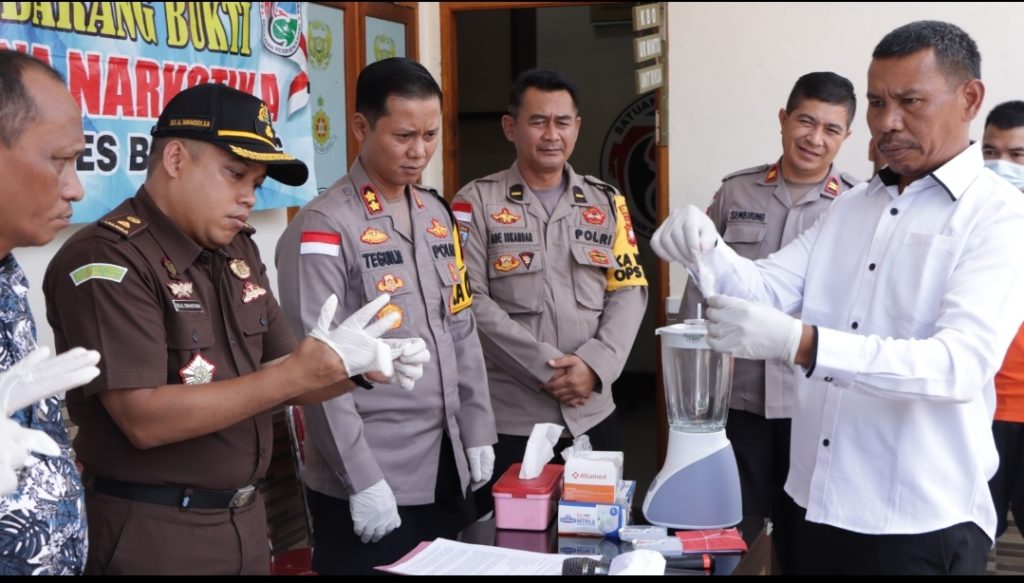 Adapun sisa sabu seberat 13,91 gram kemudian dimusnahkan dengan cara diblender menggunakan campuran pembersih lantai sampai hancur dan dibuang ke septic tank dengan disaksikan semua pihak yang hadir.