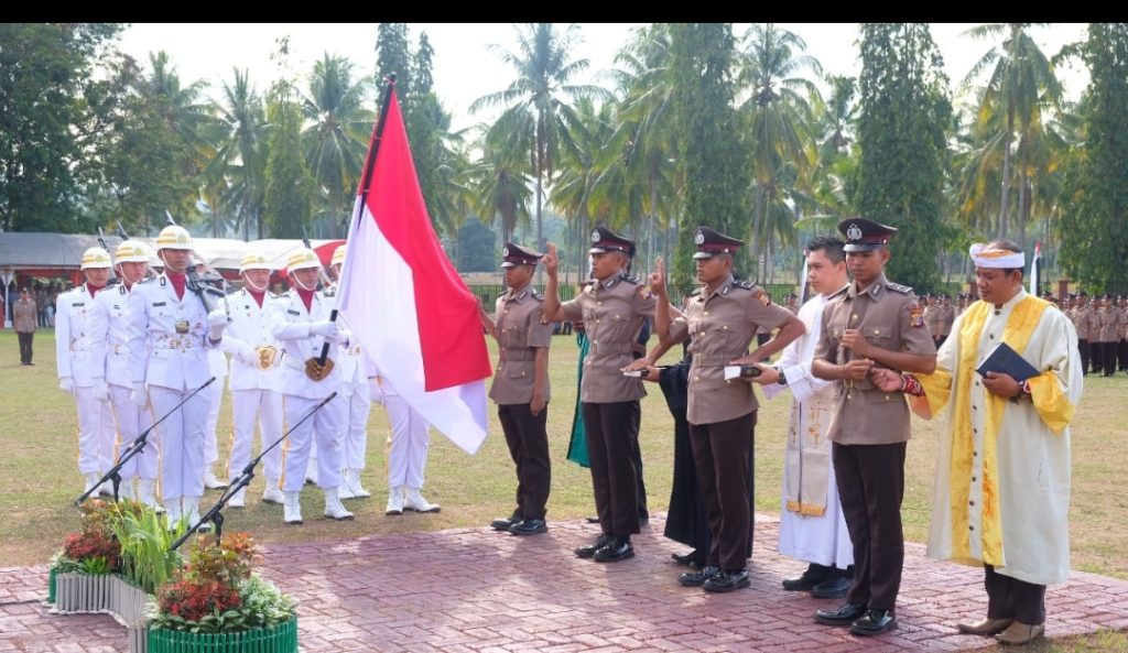 Palu – Kapolda Sulteng Irjen Pol Dr. Agus Nugroho, S.I.K.,S.H.,M.H. memimpin upacara pelantikan dan pengambilan sumpah kepada 267 siswa Diktuba Polri gelombang II TA. 2023 bertempat di SPN Polda Sulteng, Kamis (21/12/2023).