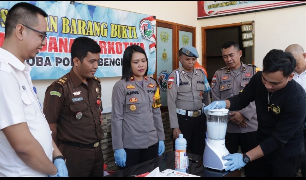 Adapun dalam pemusnahan dipimpin oleh Wakapolres Bengkayang Kompol Anne Tria Sefyna, S.H., S.I.K., dan dihadiri Pju Polres Bengkayang, Kasubsi Eksekusi dan Eksaminasi Pidum Kejari Bengkayang, Jatim Seksi Rehabilitasi BNNK Bengkayang, Perwakilan Advokat Bengkayang.