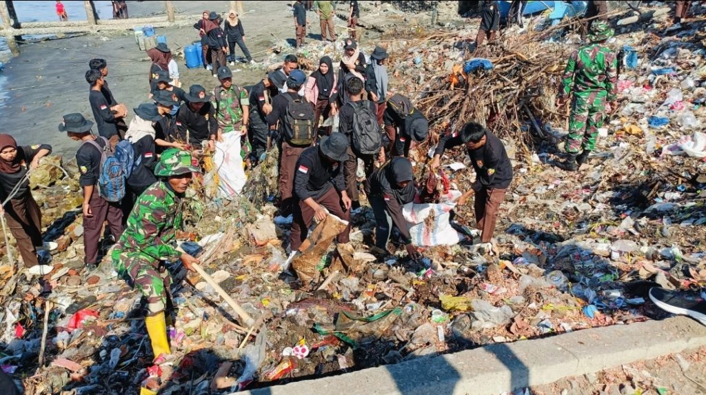 Lombok Timur – Ratusan personel Kodim 1615/Lotim bersama dengan komponen masyarakat menggelar aksi bersih-bersih Pantai Kampung Koko Desa Tanjung Luar Kecamatan Keruak Kabupaten Lombok Timur, Jumat (22/12/2023).