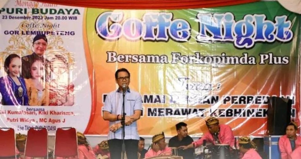 Tulungagung,- Pj. Bupati Tulungagung Dr. Ir Heru Suseno, M.T. dan Sekretaris Daerah Kabupaten Tulungagung Drs. Sukaji M.Si menghadiri Coffe Night bersama Anggota Forkopimda Tulungagung yang digelar oleh Ketua DPRD Tulungagung bertempat di GOR Lembupeteng, Sabtu malam (23/12/2023).