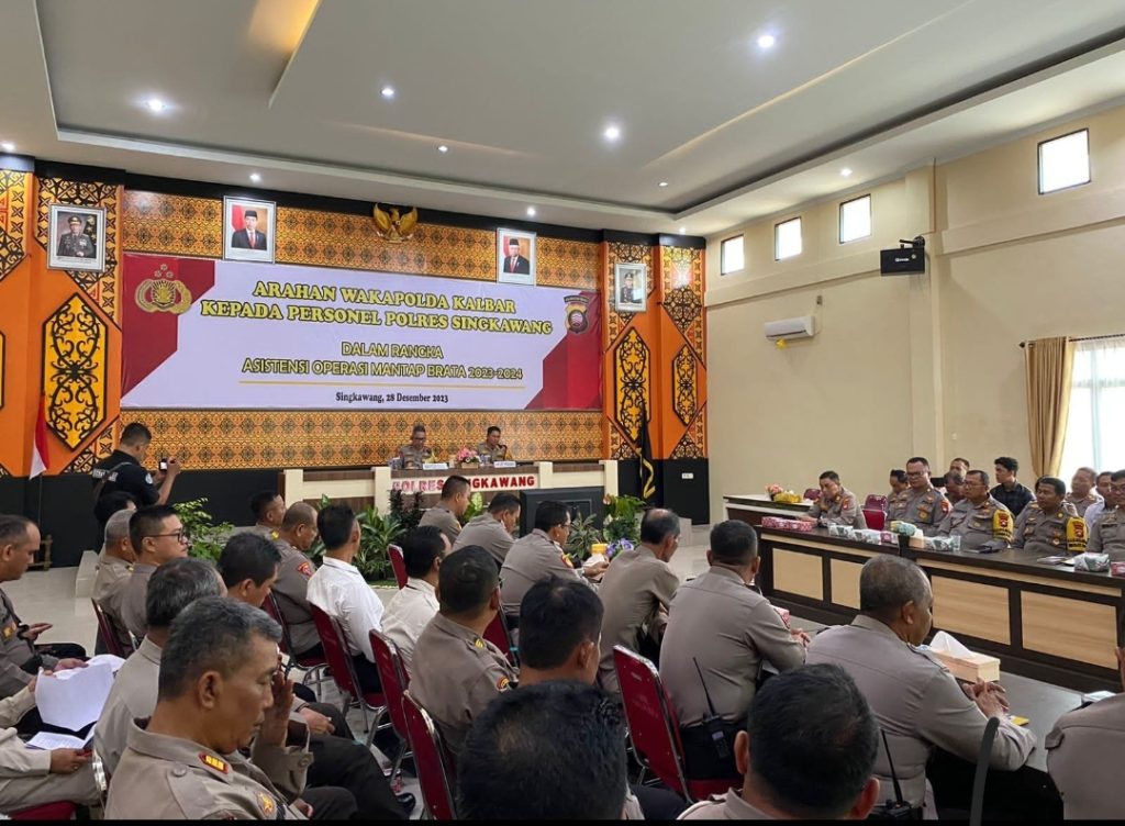 SINGKAWANG, POLDA KALBAR – Wakapolda Kalbar Brigjen Pol Roma Hutajulu, S.I.K., M.Si., melaksanakan Supervisi dan Asistensi dalam rangka Operasi Mantap Brata 2023-2024 di Polres Singkawang, pada Kamis (28/12/2023).