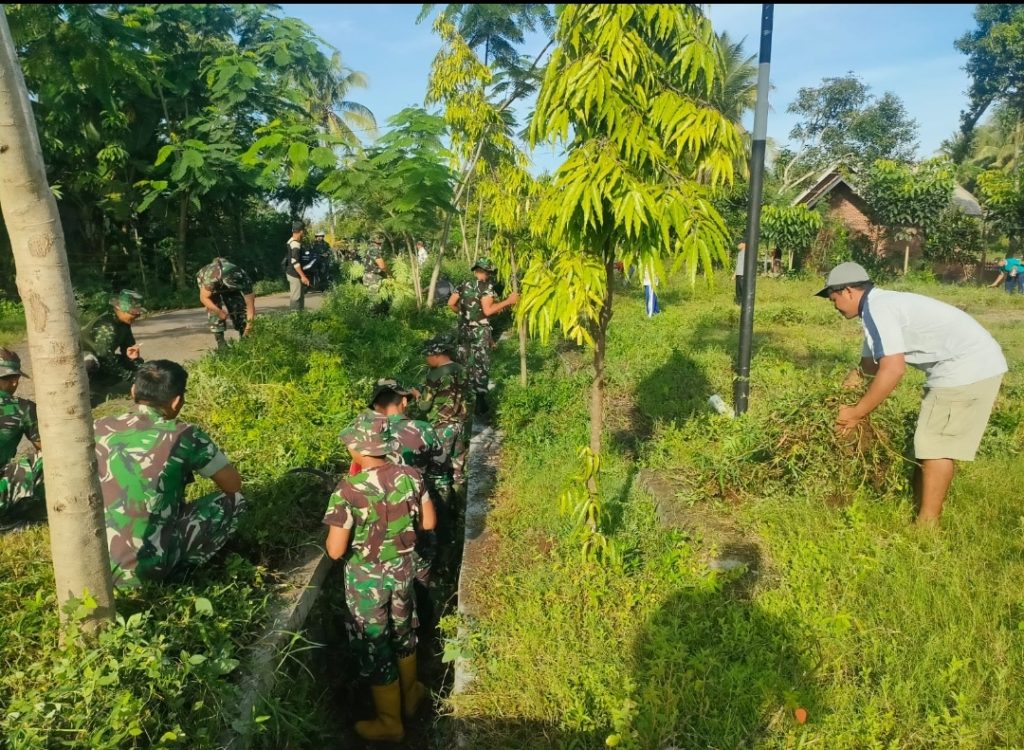 Lombok Timur – Sejumlah anggota Koramil 1615-05/Masbagik dan masyarakat menggelar gotong royong pembersihan saluran irigasi di Subak Lingkok Ratu Dusun Lingkok Ratu Desa Kesik Kecamatan Masbagik Kabupaten Lombok Timur, Rabu (10/1/2024).