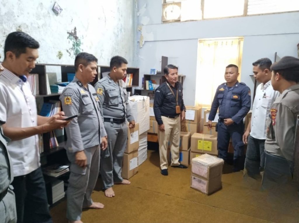 MATARAM NTB – Subsatgas PAM Kantor KPU Operasi Mantap Brata (OMB) Rinjani 2023-2024 Polda NTB melakukan pengamanan kegiatan penyortiran Surat Suara pemungutan Suara Ulang (PSU) untuk DPR RI, DPD dan DPRD Provinsi NTB yang berlangsung di Gudang penyimpanan Logistik Kantor KPU Provinsi NTB, Rabu (10/01/2023).