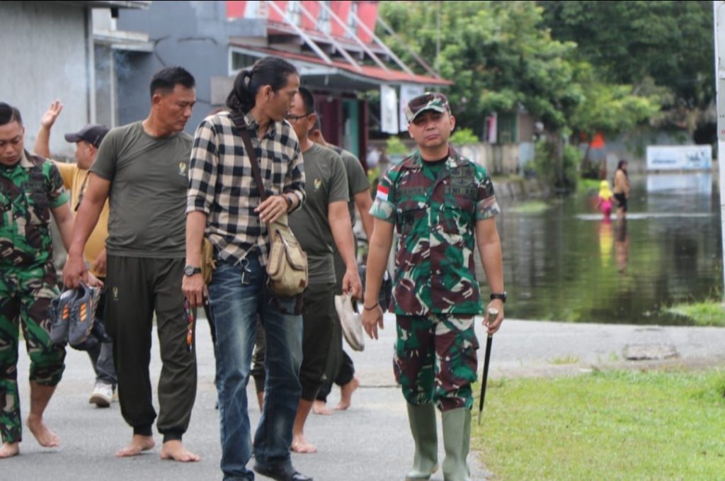 Sintang – Komandan Kodim 1205/Sintang Letkol Inf Rangga Bayu Widiartha melakukan peninjauan banjir di sekitaran Makodim Sintang, untuk melihat langsung kondisi genangan banjir diwilayahnya.