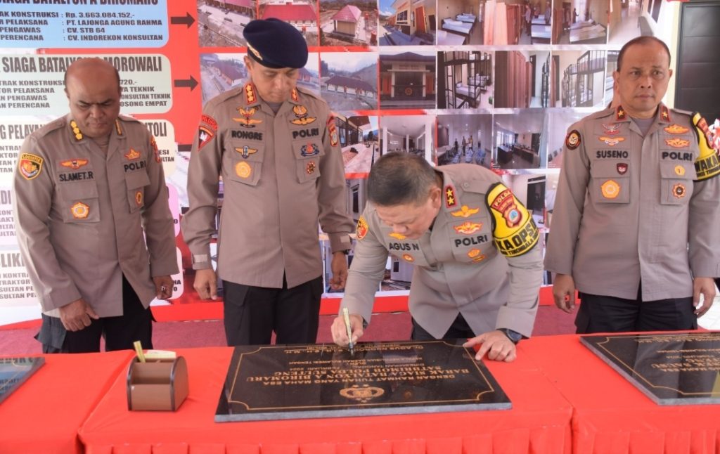 Peresmian ditandai dengan penandatanganan prasasti yang dipusatkan di markas komando Batalyon A Pelopor Satbrimob Polda Sulteng di Biromaru Kab. Sigi, pada Rabu (7/2/2024) pagi.