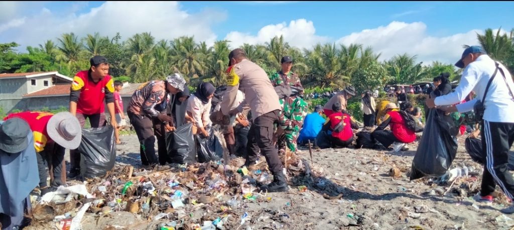 Kapolsek Labuhan Haji Iptu Abdusy Syukur melalui Bhabinkamtibmas Desa Labuhan Haji Bripka Kurnia Wardy mewakili Polsek Labuhan Haji yang ikut dalam aksi bersih-bersih pantai bersama warga yang mengais sampah untuk menjaga kebersihan lingkungan.