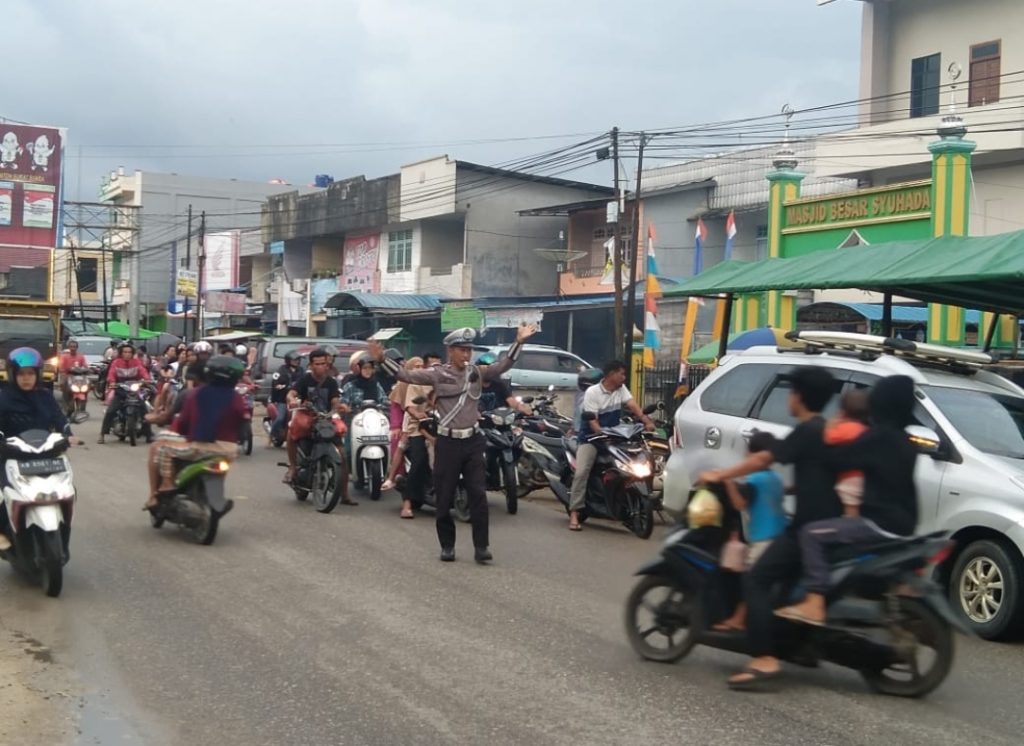Polres Landak ~ Polda Kalbar ~ Sie Humas ~ Aktivitas masyarakat Kabupaten Landak di bulan suci Ramadan khususnya pada sore hari memang cukup meningkat. Terlebih menjelang berbuka puasa, dimana masyarakat terlihat sibuk dalam mencari makanan dan minuman berbuka puasa. Maka dari itu dengan cepat Sat Lantas Polres Landak yakni Aipda Harmin Rais bersama Briptu Yospiandi Halim berikan pelayanan kepada Masyarakat dengan melakukan pengaturan lalu lintas di jalan Pemuda Dusun Tungkul Desa Hilir Kantor tepatnya pas di depan Majid Syuhada tempat berjualnya takjil untuk berbuka puasa berjalan lancar dan aman,” Selasa ( 12/3/2024 ) sore