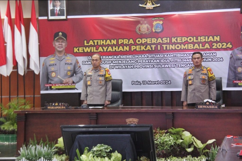 PALU, Menjelang perayaan Idul Fitri 1445 H Polda Sulteng menggelar Operasi Pekat I Tinombala 2024 yang akan berlangsung selama 14 hari dimulai tanggal 18 Maret hingga 31 Maret 2024.