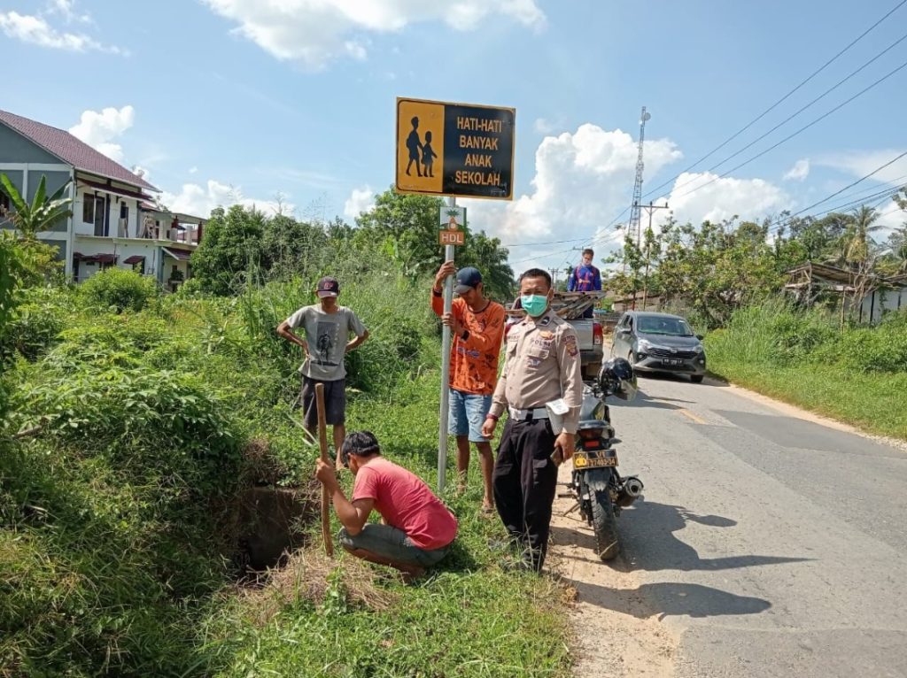 Polsek Mempawah Hulu ~ Polres Landak ~ Polda Kalbar ~guna mengantisipasi dan mengurangi tingkat kecelakaan lalu lintas di Kecamatan Mempawah Hulu, Polsek Mempawah Hulu berkerjasama dengan PT HDL ( Hutan Duta Lestari ) melaksanakan