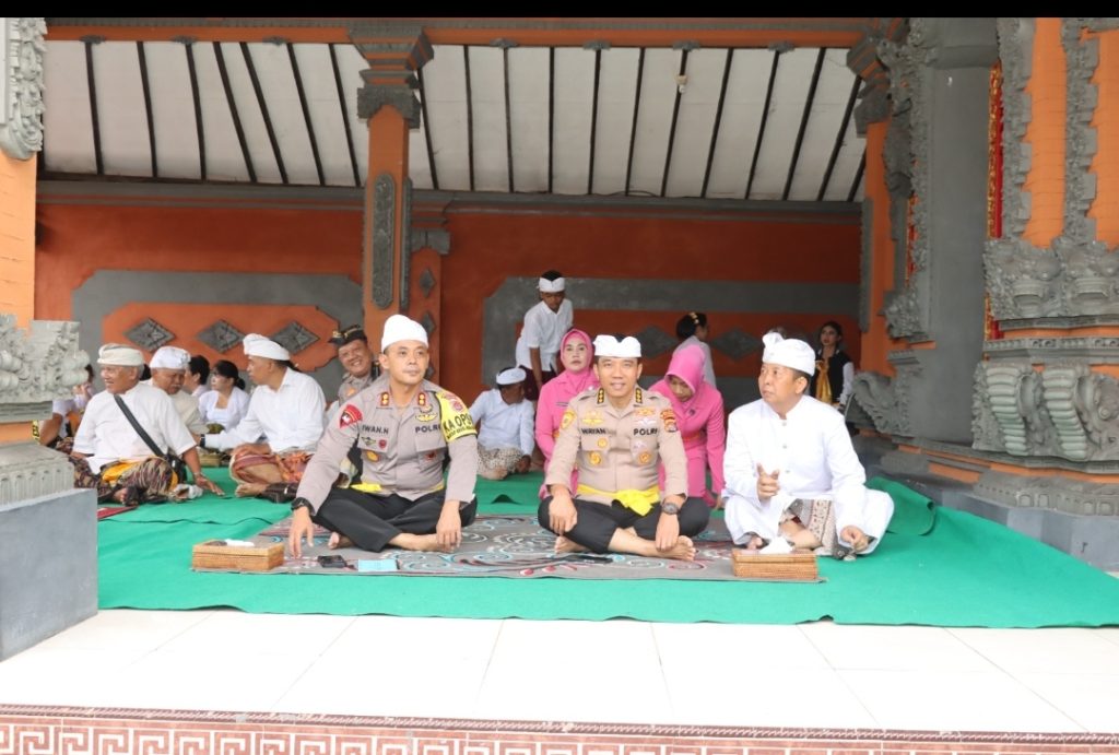 Lombok Tengah (NTB) – Kapolres Lombok Tengah AKBP Iwan Hidayat, SIK Dampingi Karo SDM Polda NTB Kombes Pol. I Wayan Gede Ardana, SIK., Msi menghadiri acara Puja Wali Pura Buana Nata ke-29 tahun 2024 bertempat di Pura Buana Polres Lombok Tengah, (24/3).
