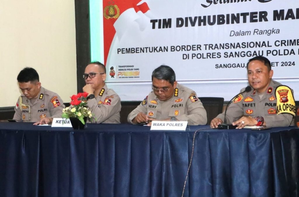 Kalbar, Sanggau ~ Pada hari Selasa tanggal 26 Maret 2024 sekira jam 09.00 Wib bertempat di Aula Wira Pratama Polres Sanggau Jl. Jend Sudirman Kecamatan Kapuas,Kabupaten Sanggau telah dilaksanakan kegiatan Kunjungan Kerja Tim Divhubinter Mabes Polri di Polres Sanggau dalam rangka Pembentukan Border Transnasional Crime Liaison Office (BTNCLO) di Polres Sanggau Polda Kalbar.