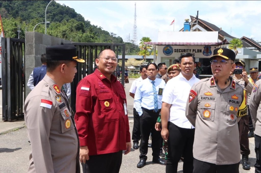 Pukul 10.10 wib Waka Polda Kalbar Brigjen Pol Roma Hutajulu, SIK, M.Si beserta rombongan PJU Polda Kalbar memonitoring Area pos lintas batas negara (PLBN) Entikong.
