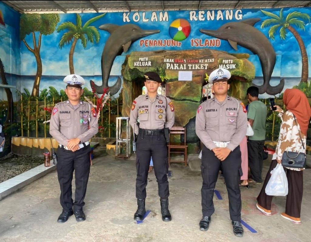 SEKADAU, Polda Kalbar – Ciptakan suasana aman dan kondusif selama libur Idul Fitri 1445 H, petugas Pos Pelayanan (Posyan) Operasi Ketupat Kapuas Polres Sekadau melakukan patroli dialogis ke tempat wisata Kolam Renang Penanjung Island, Jalan Merdeka Timur, pada Sabtu (13/4/2024).