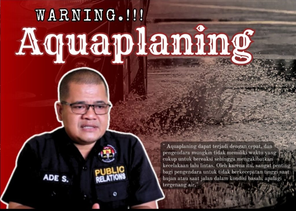 ” Aquaplaning dapat terjadi dengan cepat, dan pengendara mungkin tidak memiliki waktu yang cukup untuk bereaksi sehingga mengakibatkan kecelakaan lalu lintas. Oleh karena itu, sangat penting bagi pengendara untuk tidak berkecepatan tinggi saat hujan atau saat jalan dalam kondisi basah, apalagi tergenang air,” ujar Ade.