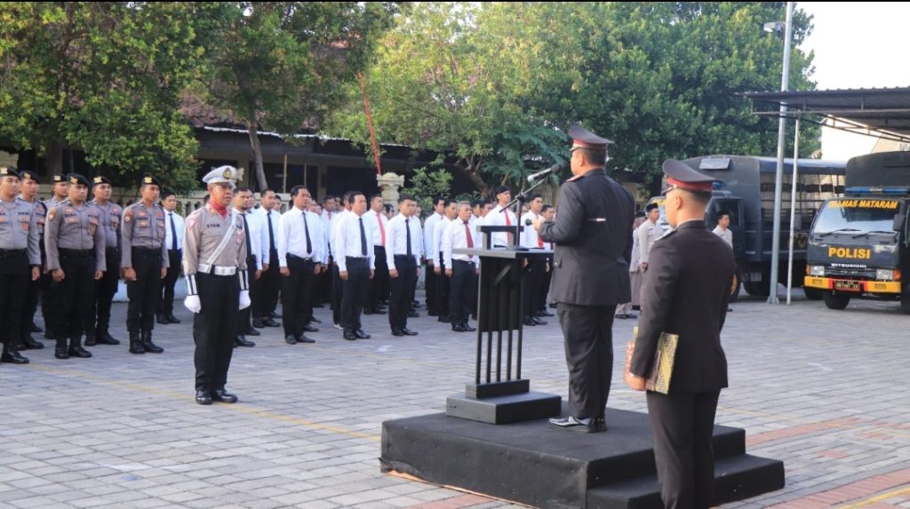 Turut hadir dalam upacara tersebut Wakapolresta Mataram AKBP IWayan Sudarmantha SIK, MH, para Kapolsek jajaran, pejabat utama Polresta Mataram dan personel Polresta Mataram.