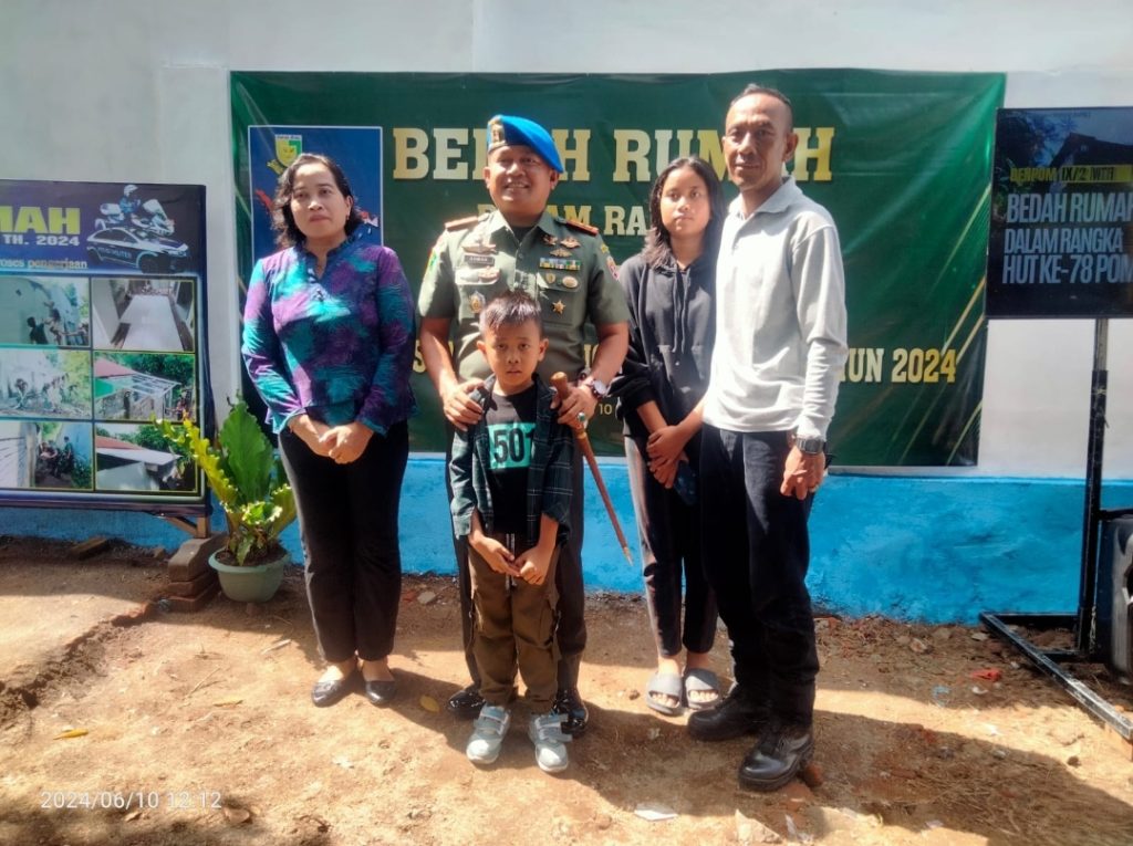 MATARAM – HUT ke 78, Polisi Militer TNI Angkatan Darat (POMAD), dengan tema ” Dedikasi Tanpa Henti Mengabdikan Kiprah Polisi Militer Angkatan Darat Guna Menyongsong Indonesia Emas”, Komandan Detasemen Polisi Militer lX/2 Mataram Letkol Cpm Ahmad Suraidy SH,.M.H,mengecek dan menyerahkan langsung kunci hasil bedah rumah tidak layak huni (RTLH) kepada Purnawirawan TNI Angkatan Darat, bertempat, Jln.Tanjung Raya, Gang Beji Dusun Rendang Bajur, Desa Taman Sari, Kecamatan Gunungsari, Kabupaten Lombok Barat, NTB, Senin (10/06/2024).