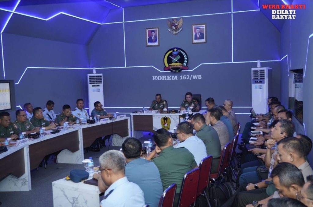 Usai memberikan sambutan, acara dilanjutkan dengan paparan Kasrem 162/WB, paparan Danlanal Mataram dan Danlanud ZAM Rembiga, sesi tanya jawab dan diakhiri dengan penyerahan cinderamata.