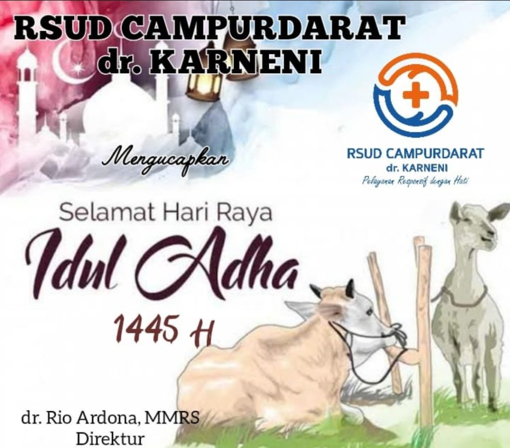 Tulungagung,- Segenap Keluarga Besar RSUD Campurdarat dr. Karneni Tulungaung Mengucapkan Selamat Hari Raya Idul Adha 1445 H.