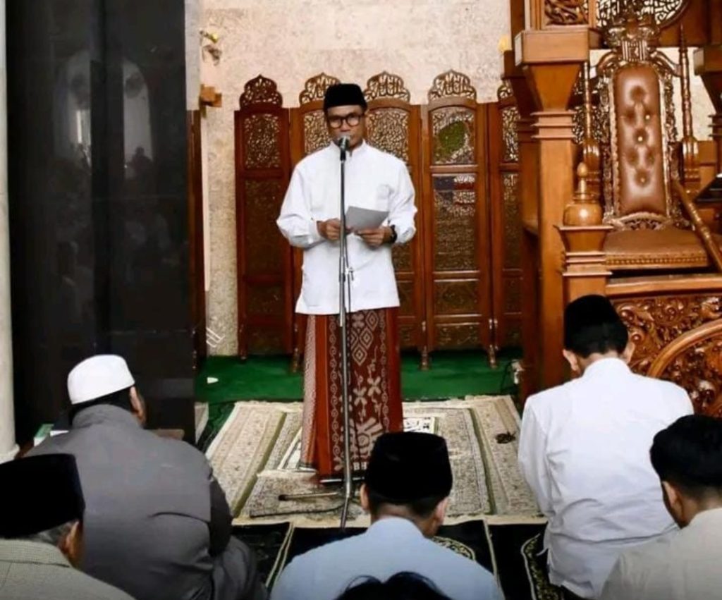 Usai melaksanakan Sholat Idul Adha berjamaah, Pj Bupati Tulungagung dan Sekda Tulungagung melakukan penyerahan hewan qurban secara simbolis di Masjid Al-Munawwar Tulungagung.(Ft)