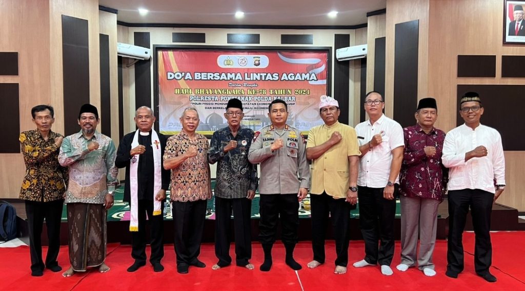 Polda Kalbar – Dalam rangka menyambut HUT Bhayangkara ke-78, Polresta Pontianak menggelar beberapa kegiatan diantaranya doa bersama Lintas Agama yang dilaksanakan di Aula Polresta Pontianak, Rabu (6/6/24) pukul 08.30 WIB.
