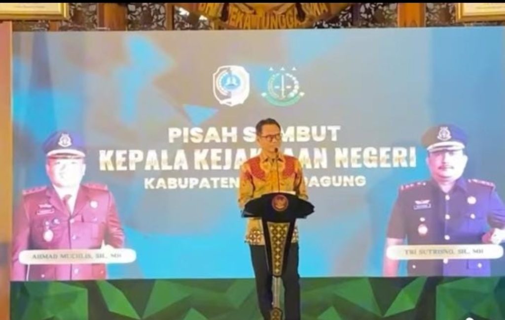 Tulungagung,- Pj Bupati Tulungagung Dr. Ir Heru Suseno, M.T., menghadiri acara pisah sambut Kepala Kejaksaan Negeri (Kajari) Tulungagung antara pejabat lama, Ahmad Muchlis, S.H.,M.H. dengan pejabat baru Tri Sutrisno S.H, M.H di Pendopo Kongas Arum Kusumaning Bangsa, pada Jum’at malam (28/06/2024).