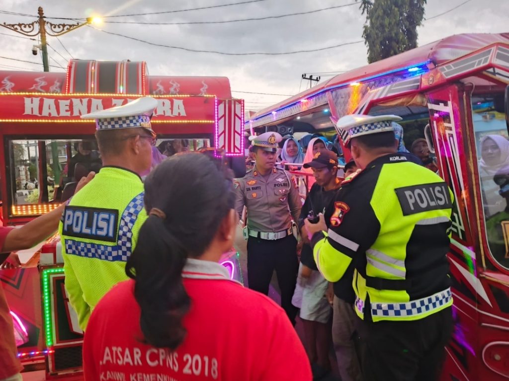 MATARAM NTB – Sebagai upaya menciptakan keamanan dan keselamatan di jalan raya, Sat Lantas Polresta Mataram memberikan sosialisasi dan himbauan kepada sopir dan penumpang Kendaraan wisata Odong-odong yang melintas di bundaran Bandara ex Bandara Selaparang menjelang pelaksanaan konser music dalam rangka MXGP Lombok, Sabtu (06/07/2024).