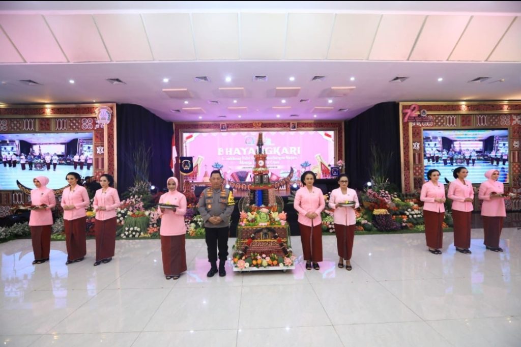 Jakarta – Persatuan istri anggota Polri yakni Bhayangkari memperingati Hari Kesatuan Gerak Bhayangkari (HKGB) ke-72 yang jatuh pada Sabtu (19/10/2024) hari ini, di Aula Gedung Bareskrim Polri.