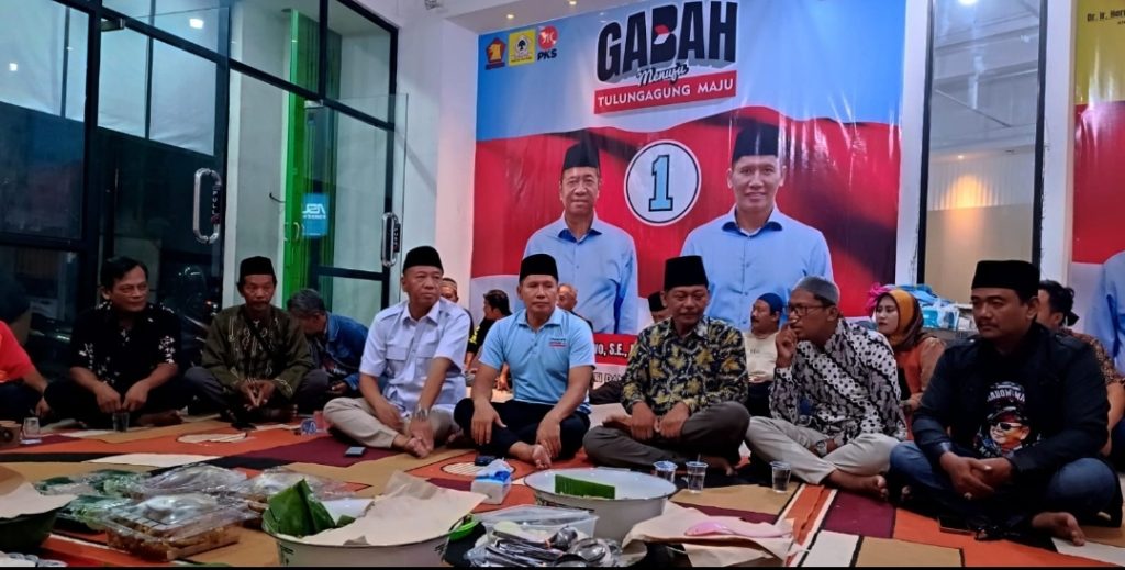 Tulungagung,- Bertempat di kantor sekretariat pusat Pemenangan GaBah yang beralamat di jalan P. Diponegoro, Tulungagung, Pasangan Calon (Paslon) Bupati dan Wakil Bupati Tulungagung nomer urut 1, Gatut Sunu – Ahmad Baharudin (GaBah) menggelar tasyakuran atas dilantiknya Presiden dan Wakil Presiden terpilih, Prabowo Subianto dan Gibran Rakabuming Raka.
