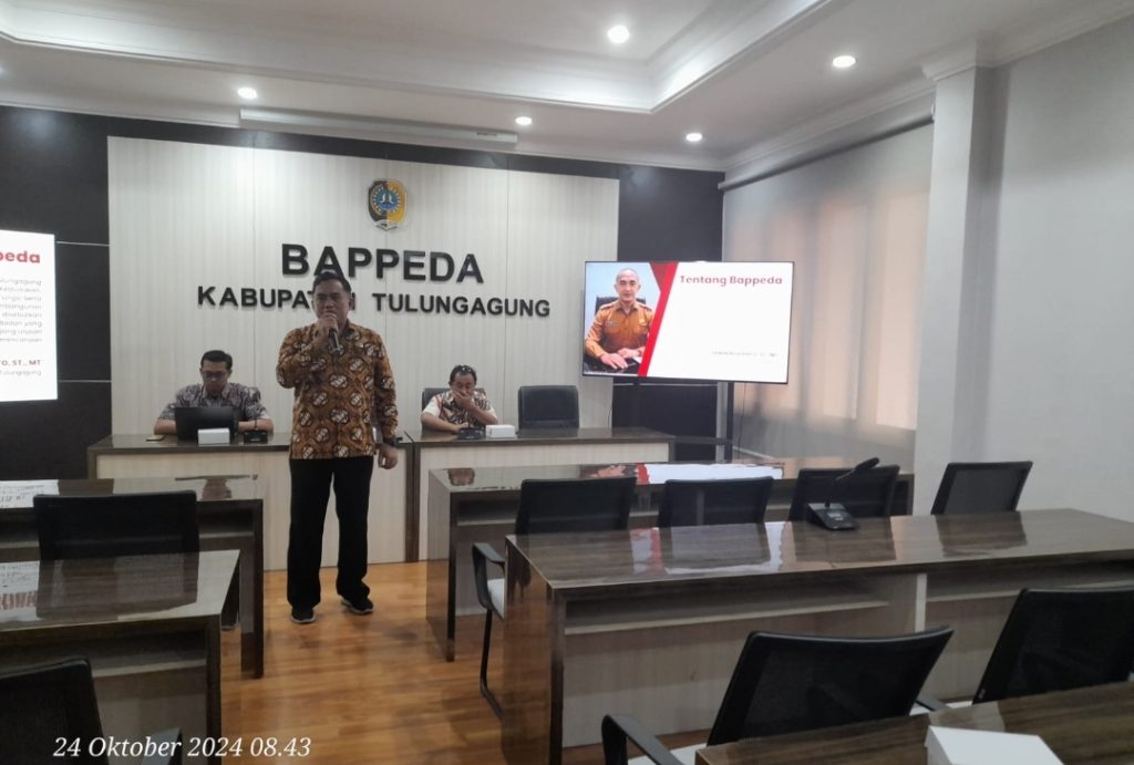 Tulungagung – Badan Perencanaan Pembangunan Daerah (Bappeda) Tulungagung menggelar Forum Konsultasi Publik (FKP) tentang penyelenggaraan pelayanan publik Bappeda kabupaten Tulungagung tahun 2024, Kamis (24/10/2024). Acara bertempat di Ruang Rapat lantai II.